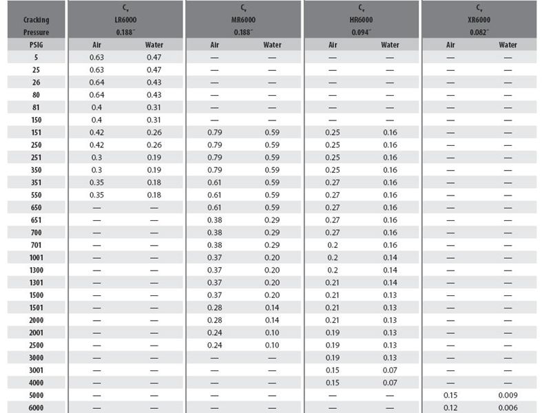 | LR6065-2M4G-AH | Seal Material N/A Kalrez | Temperature N/A -40° to +550° ºF-40° to +288° ºC | Port Size - Inlet N/A 1/4" NPT Male | Port Size - Outlet N/A 1/4" Gyrolok | A N/A 3.10 in | B N/A 1.44 in |
